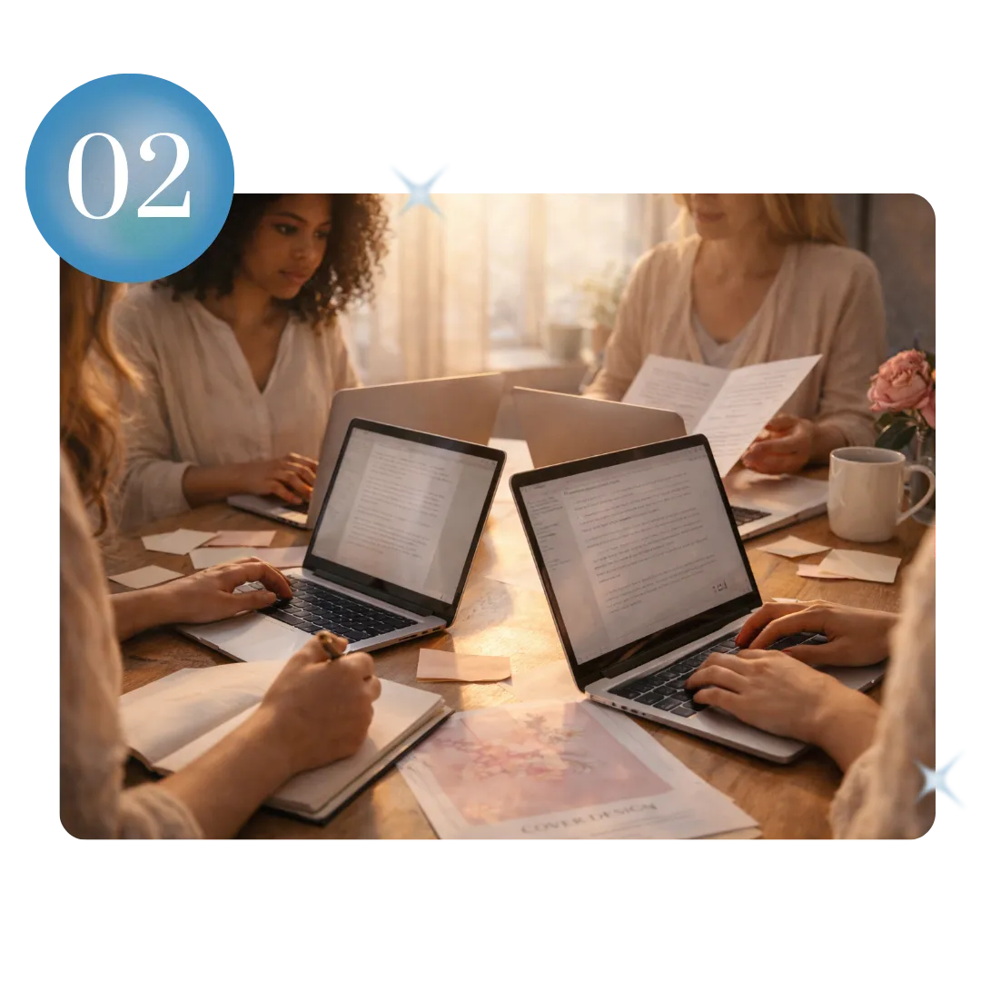 At River Rose Press, we offer heart-centered publishing services designed to support you to bring your sacred work into the world. As a full-service agency, our team walks with you every step of the way—from manuscript development to editing and design, printing, and launch strategy. With a focus on creative collaboration and spiritual integrity, we ensure your message is honored and your voice shines. We offer both full-service publishing packages and custom support to meet you where you are on your journey.